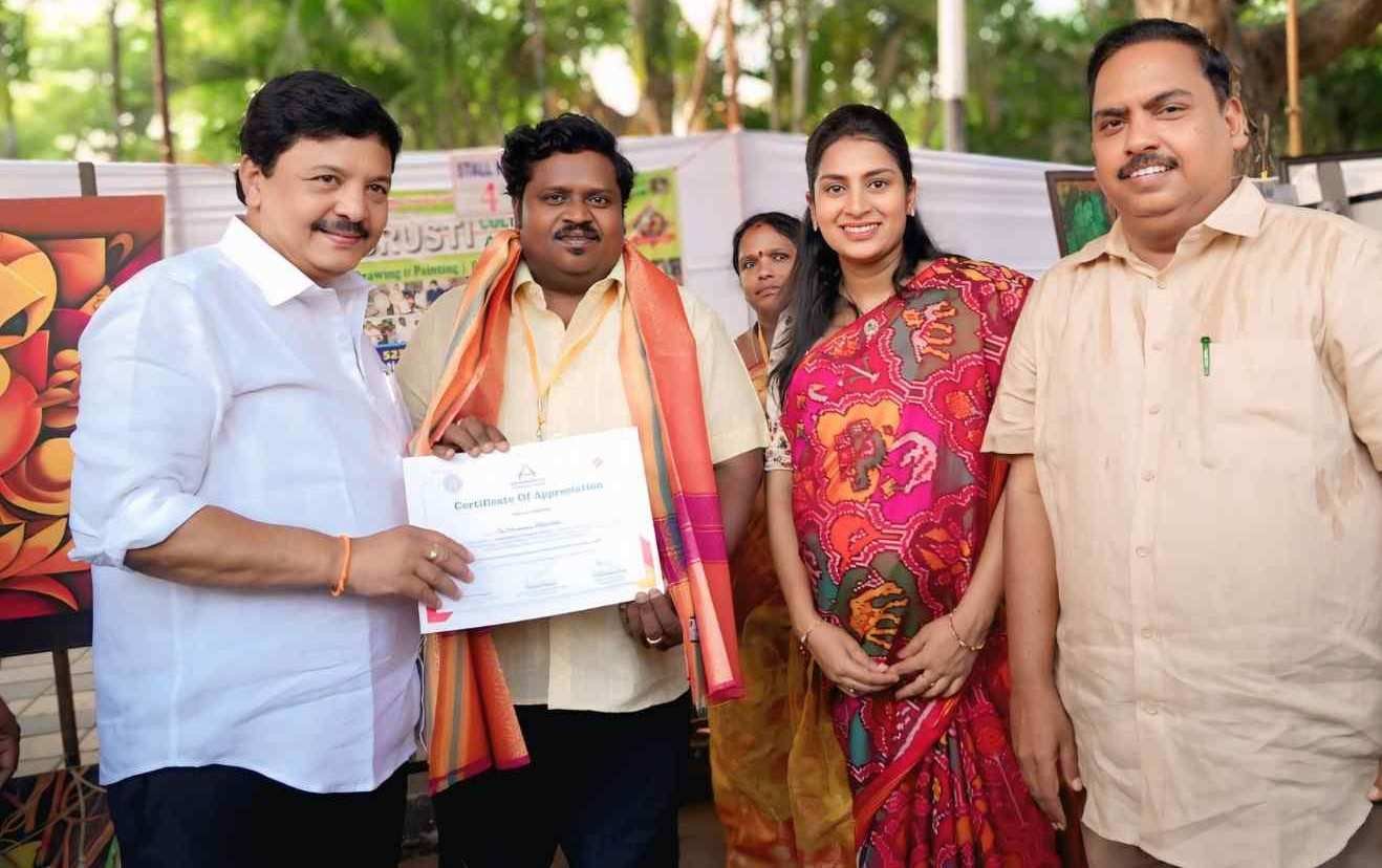 In 2017, the then Culture Minister Palle Raghunatha Reddy presented a certificate of appreciation at the Mana Sankushti Chitra Kala exhibition, and the Director of the Department of Culture, Dr. D. Honored by Vijaya Bhaskar